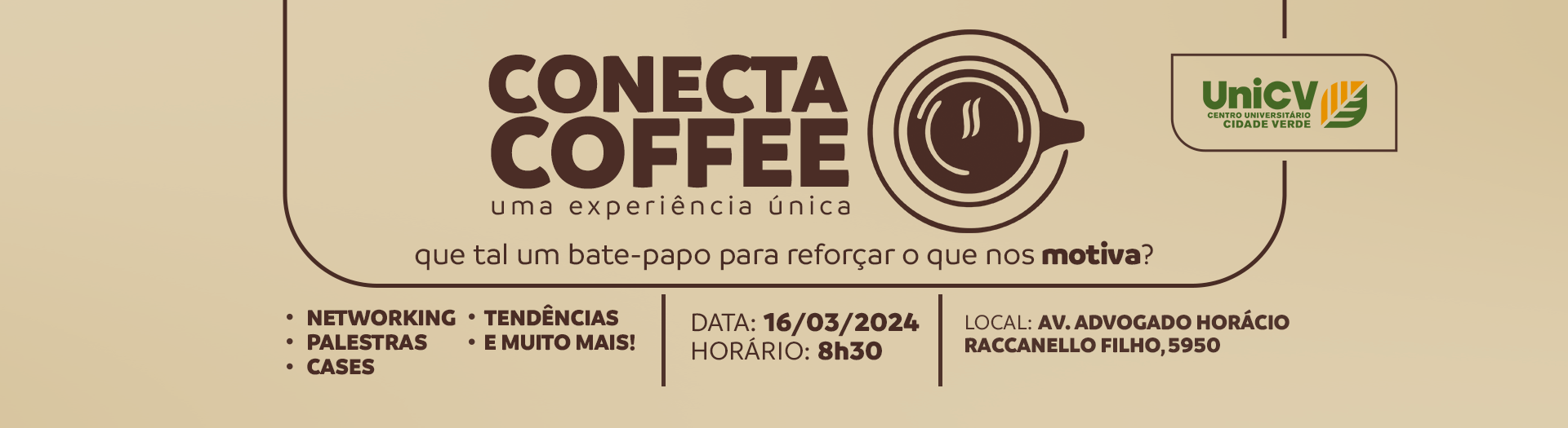Inscrições no link – https://www.sympla.com.br/evento/conecta-coffee-2025/2837347?referrer=www.google.com&referrer=unicv.edu.br