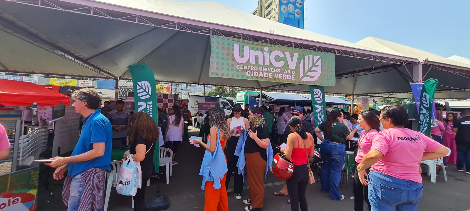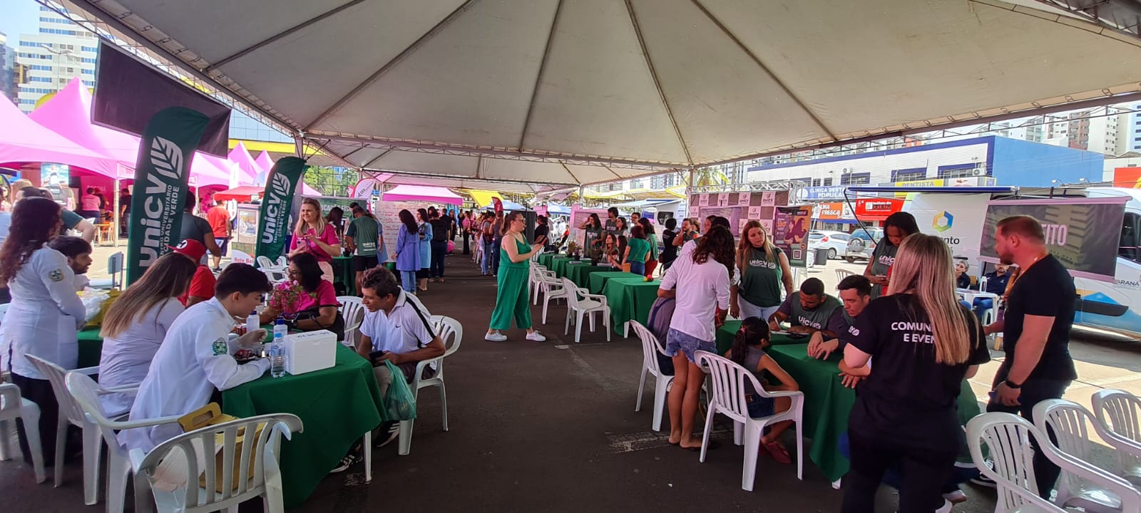 No último sábado, dia 21, o estacionamento do Terminal Intermodal viu a passagem de milhares de pessoas durante as ações do projeto “Paraná Rosa,” uma iniciativa do Governo do Estado, em parceria com a Prefeitura de Maringá, voltada para conscientizar as mulheres sobre a prevenção do câncer de útero e mama. O Centro Universitário Cidade Verde (Unicive) participou ativamente, oferecendo 333 atendimentos nas áreas de Direito, Saúde e Psicologia.